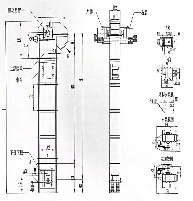 D型斗式提升機外形結(jié)構(gòu)圖